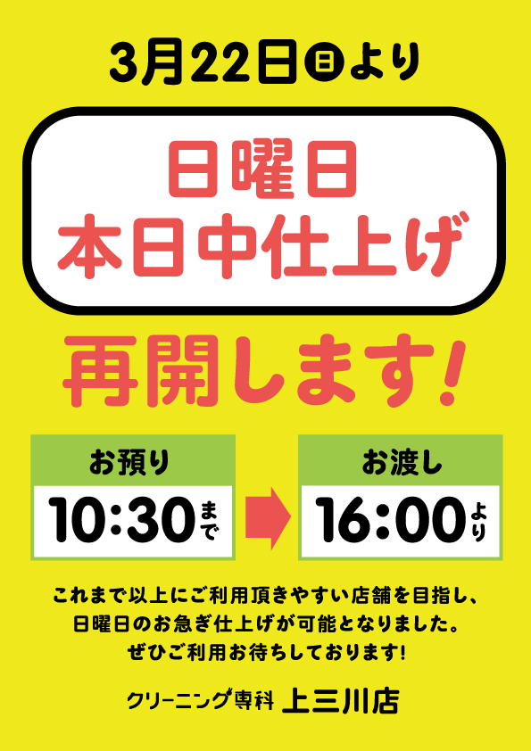 本日中仕上げはお休みとなります。